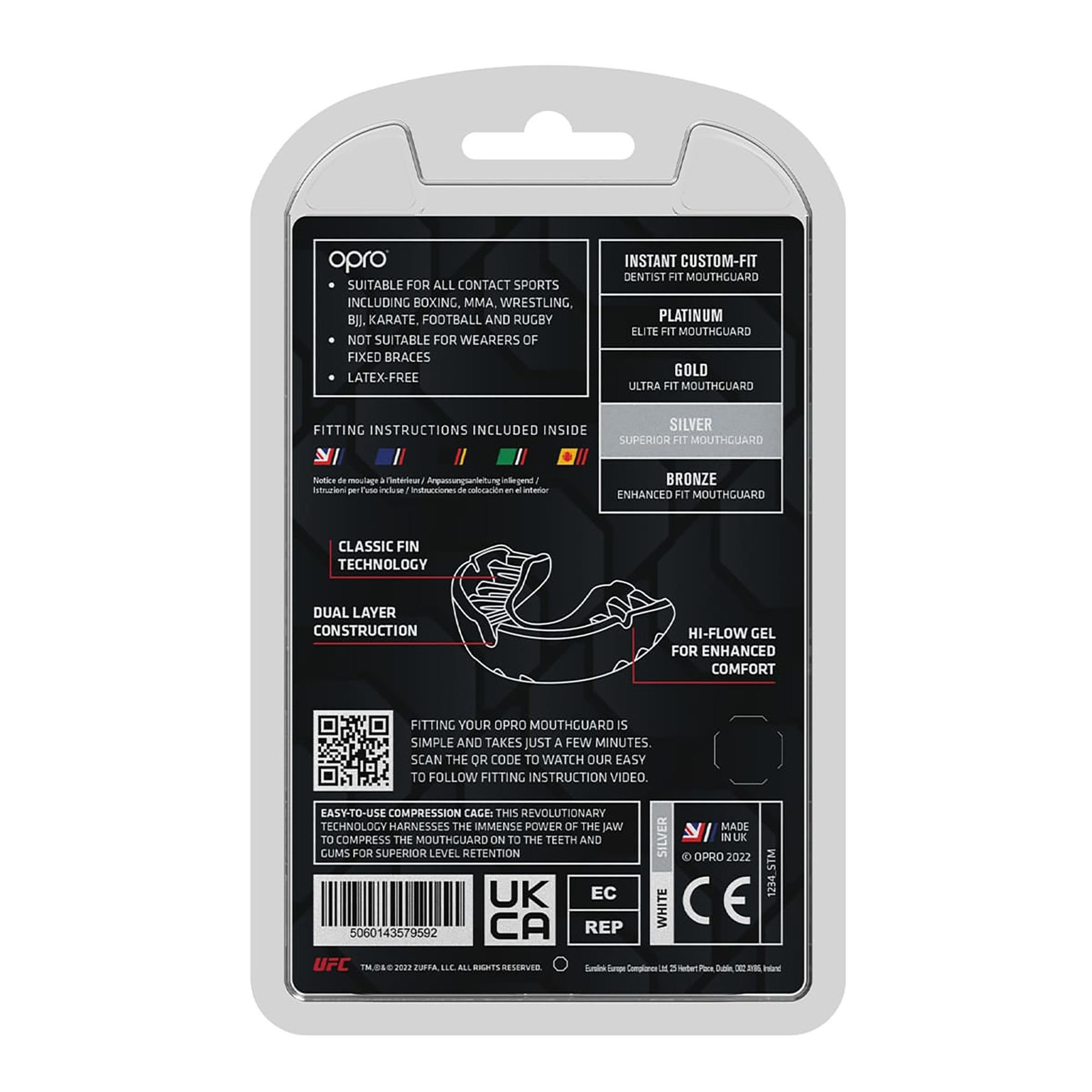 Het gebruik van de UFC opro silver black red is eenvoudig en snel. Je verwarmt de gebitsbeschermer in heet water en plaatst deze vervolgens in je mond. De vinnen breken af en vormen zich naar je gebit, waardoor je een perfecte pasvorm krijgt. Deze gebitsbeschermer is niet geschikt voor dragers van vaste beugels, maar kan door iedereen vanaf 10 jaar worden gebruikt. De maat is universeel, wat betekent dat je je geen zorgen hoeft te maken over het kiezen van de juiste maat. Met deze gebitsbeschermer ben je verzekerd van optimale bescherming en comfort tijdens al je vechtsportactiviteiten.